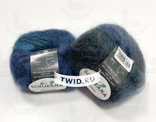 Artissimo от Schulana — мягкий мохер с обильным пухом на основе из мягкой шерсти. Пряжа окрашена градиентом, имеет очень красивые переходы цвета. Рекомендуемые спицы — 7-12 мм, в зависимости от придуманного дизайна. Примерный расход на плечевое изделие с рукавами размера 44-46 — 225 грамм, без рукавов 125 грамм.