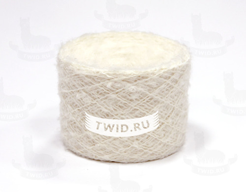 Astrakhan — букле из мягкой шерсти. Буклированность пряжи образовалась за счет обвития волокон шерсти вокруг очень тонкой нити полиамида. Полотно легкое, довольно пушистое. Не колкое, но чувствительным людям может быть жестковатое. Образцы на фото связаны из одной нити (бежевый обазец) и в две (молочный и бежевый образцы).