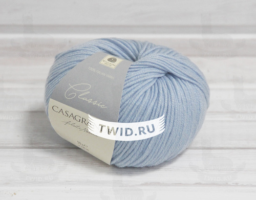 Состав:Меринос 100% Вес мотка:50 г Метраж:125 м / 50 г Цвет:Голубой Страна:Италия Производитель:Casagrande filati Nobili