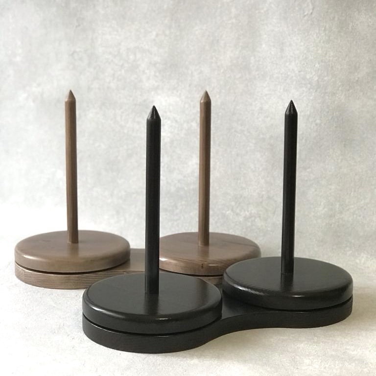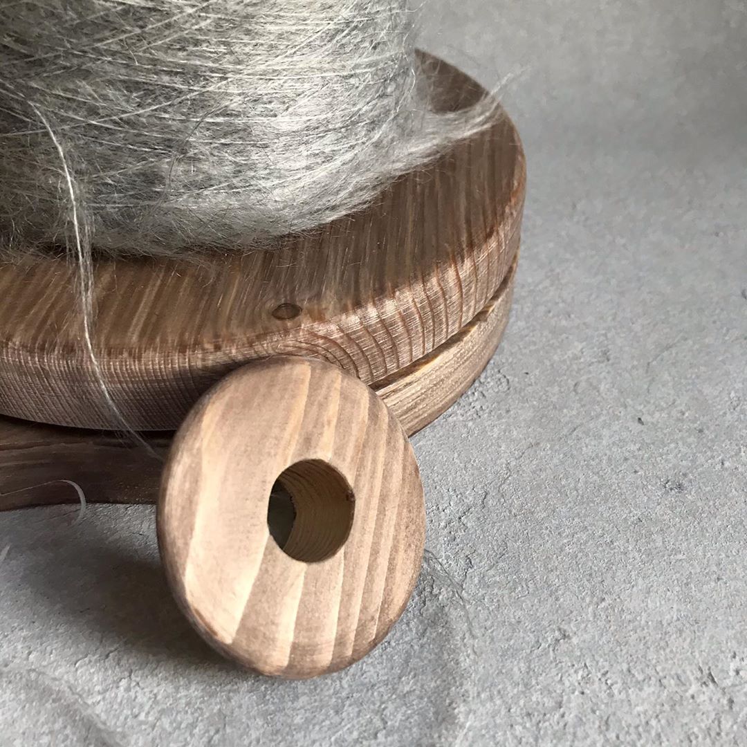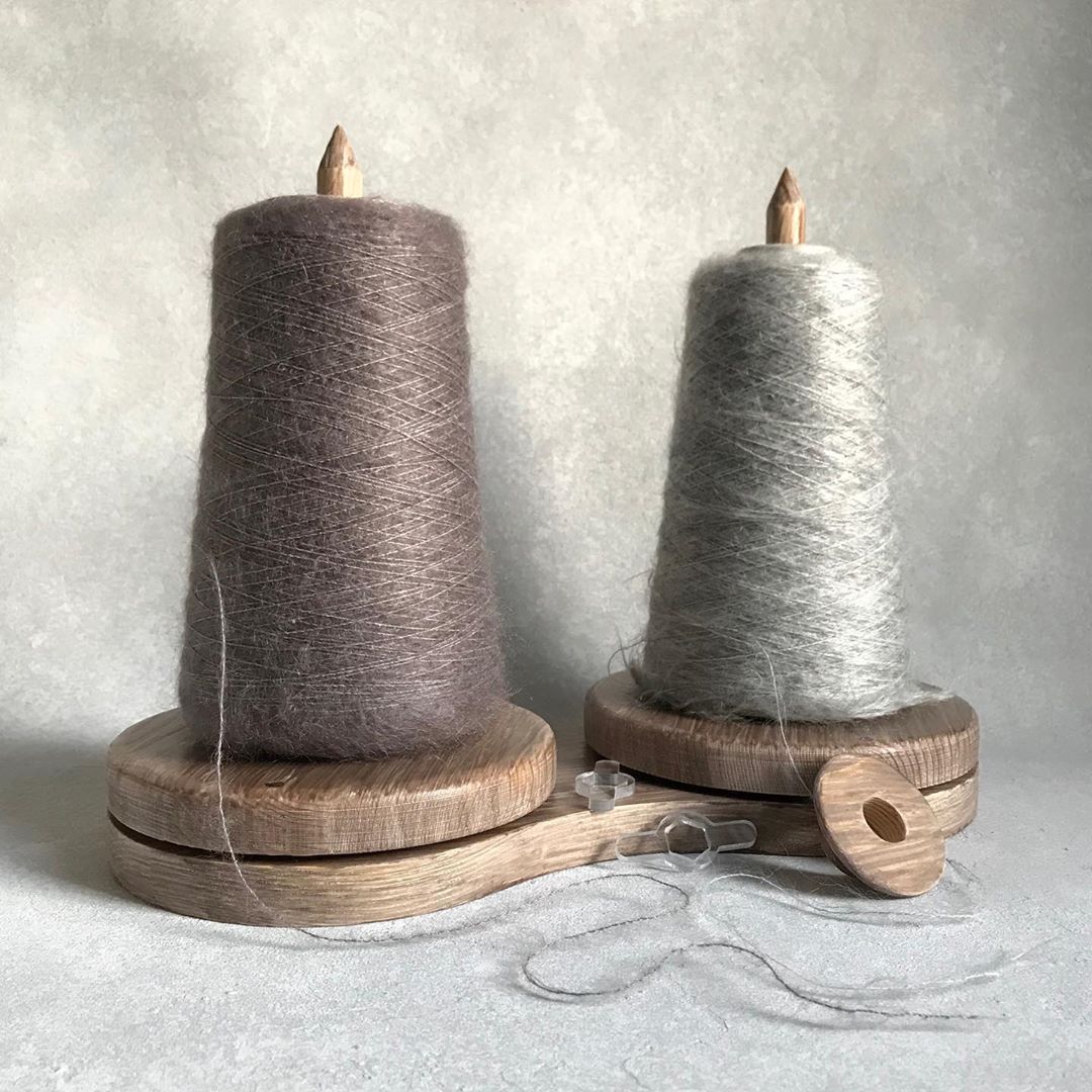 Двойной деревянный держатель для мотков и бобин — идеальное решение для фиксации двух бобин или мотков (для вязания в несколько нитей), также можно использовать с одной бобиной. Благодаря этому устройству сохряняется равномерная подача/натяжение нити, что помогает вязать более ровное полотно.