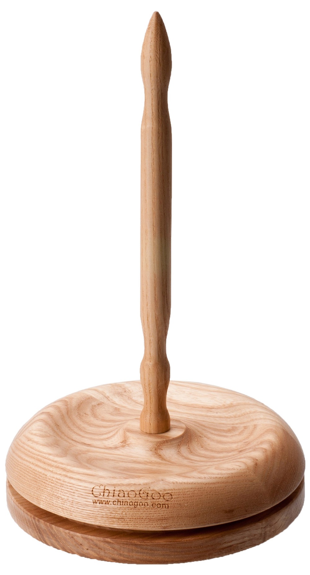 Держатель мотка (yarn butler) от ChiaoGoo очень удобное приспособление. Представляет собой два диска, которые вращаются между собой и стержень, на который можно поместить моток пряжи или бобину, для лучшего соскальзывания нити, соответственно более удобного и скоростного вязания.