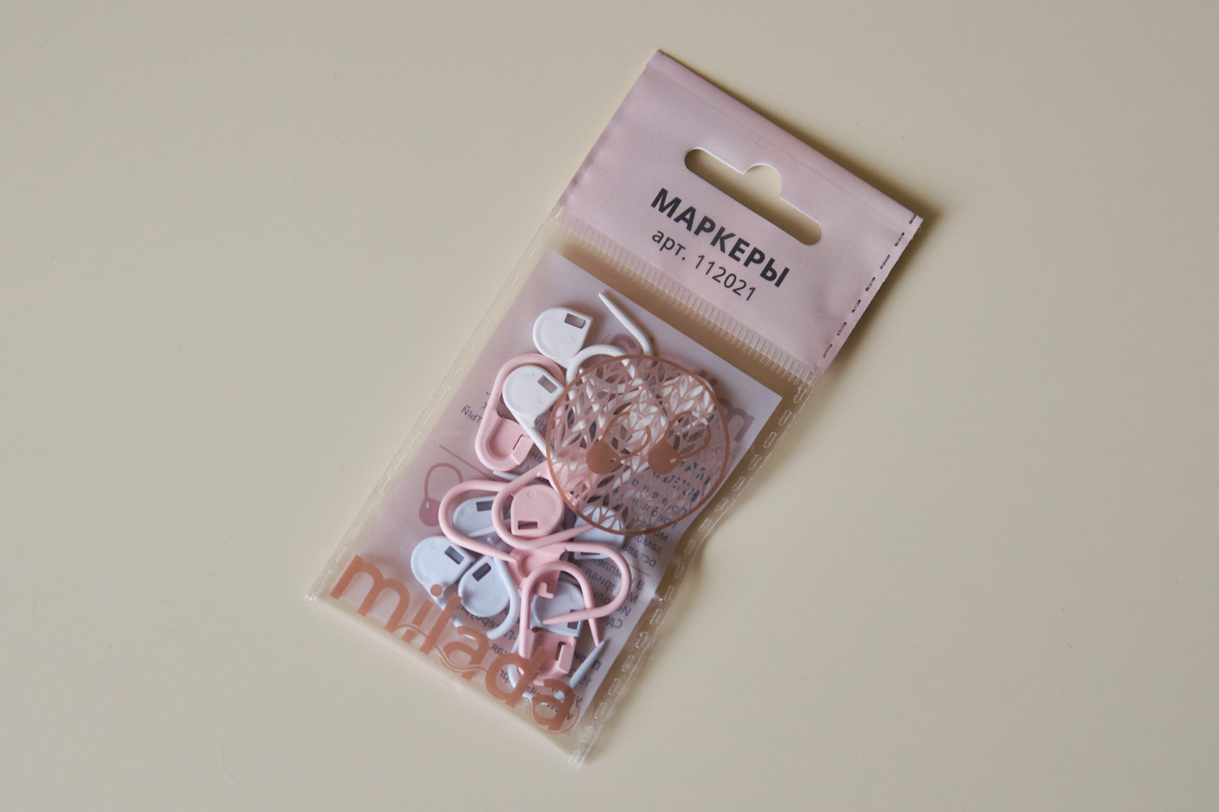 Набор маркеров-замочков для вязания от российского бренда Milada. Состоит из 15 маркеров, которые отлично подходят для обозначения прибавок/убавок на полотне и других значимых моментов в процессе вязания. Маркеры приятные на ощупь и довольно крепкие.