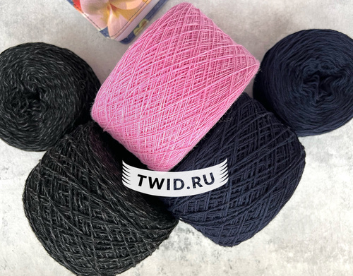 — Ninety Five: тёмно синий 136 г + чёрный меланж 147 г (283 г) (Кашемир 95%, Шерсть 5%, 225 м / 50 г).