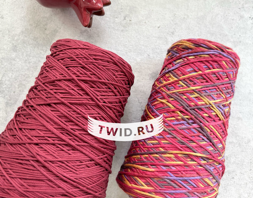 Однотонный шнурок Loop (Хлопок 70%, ПА 30%, 100 м / 50 г) и Baguette stampato (Хлопок 40% Вискоза 60%, 100 м / 50 г) в разных вариантах по весу наборов: Loop 214 г + Baguette 317 г Loop 273 г + Baguette 200 г Baguette stampato 500 г.